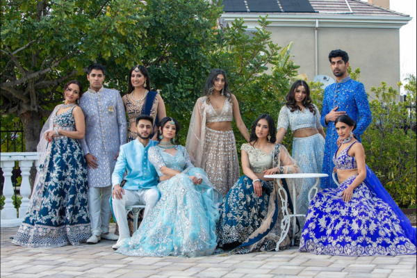 We offer bridal packages, our most popular package is a collection of 3 outfits for Sangeet, Wedding and Reception. We design custom Bridesmaids & Groomsmen outfits, and offer special Bridesmaids & Groomsmen packages. Bride's and Groom's families need to be fashion, color & style co-ordinated for the big event, we work with you, to put together customized Family packages.