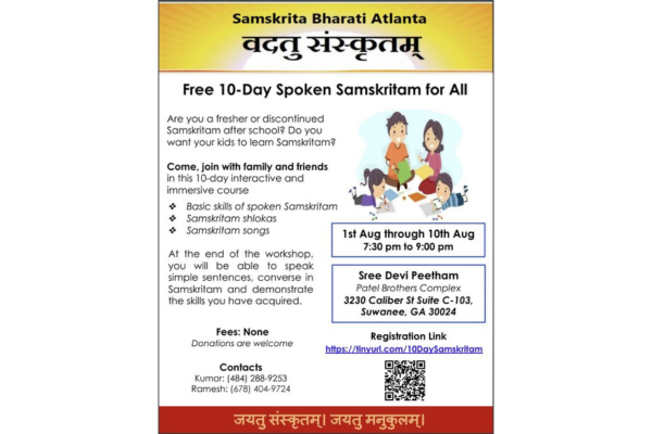 At the end of the workshop. you will be able to speak simple sentences, converse in Samskritam and demonstrate the skills you have acquired.