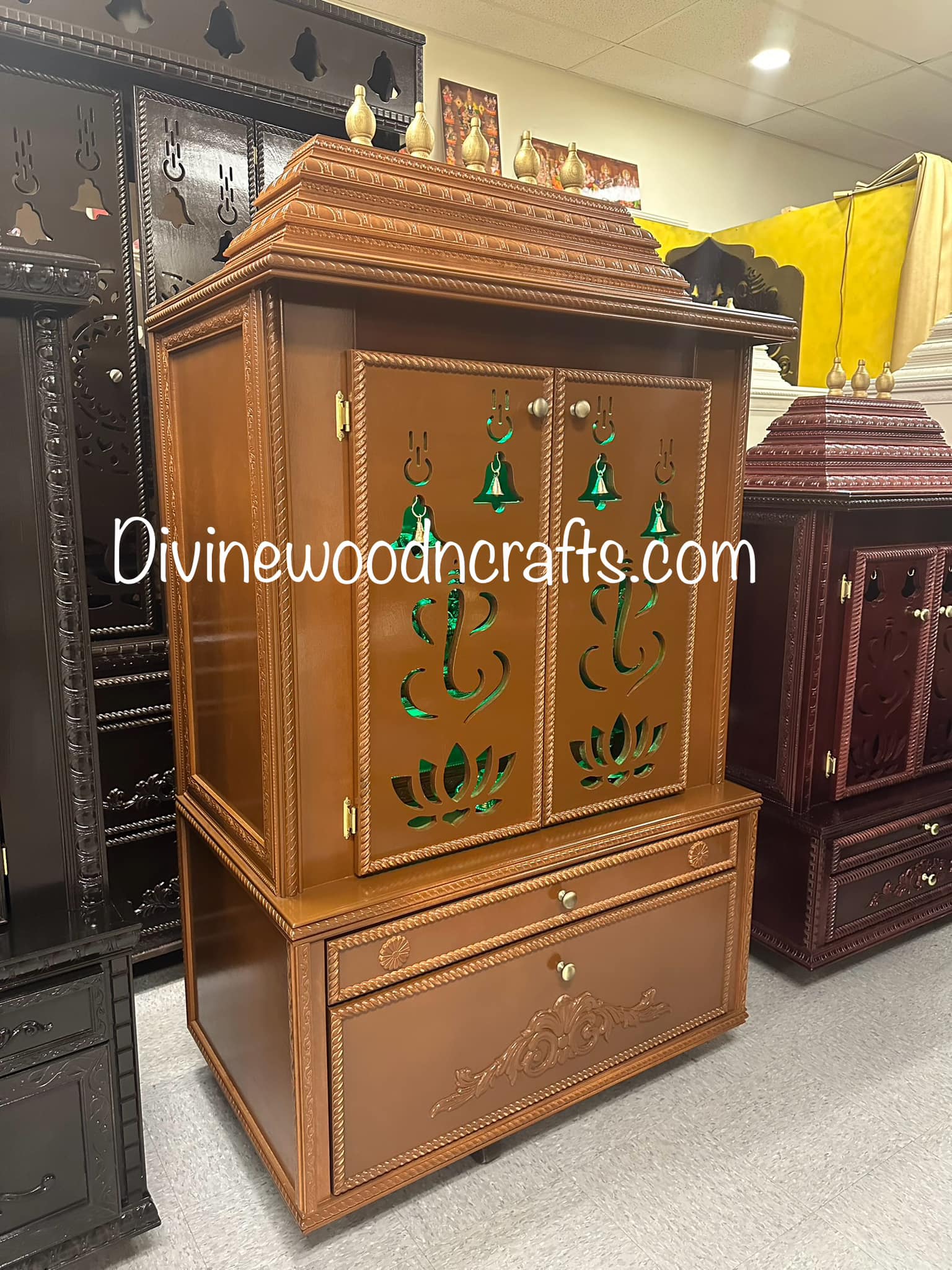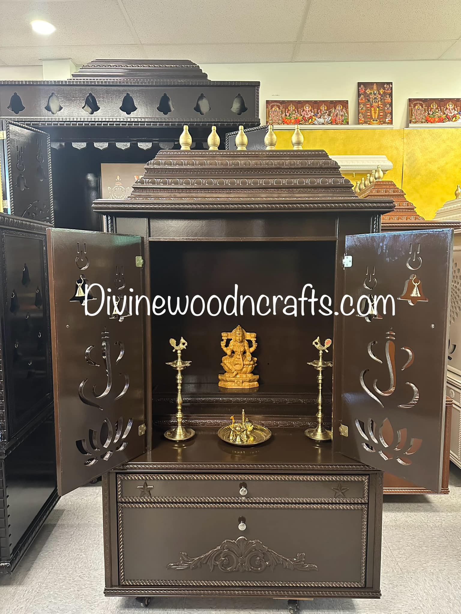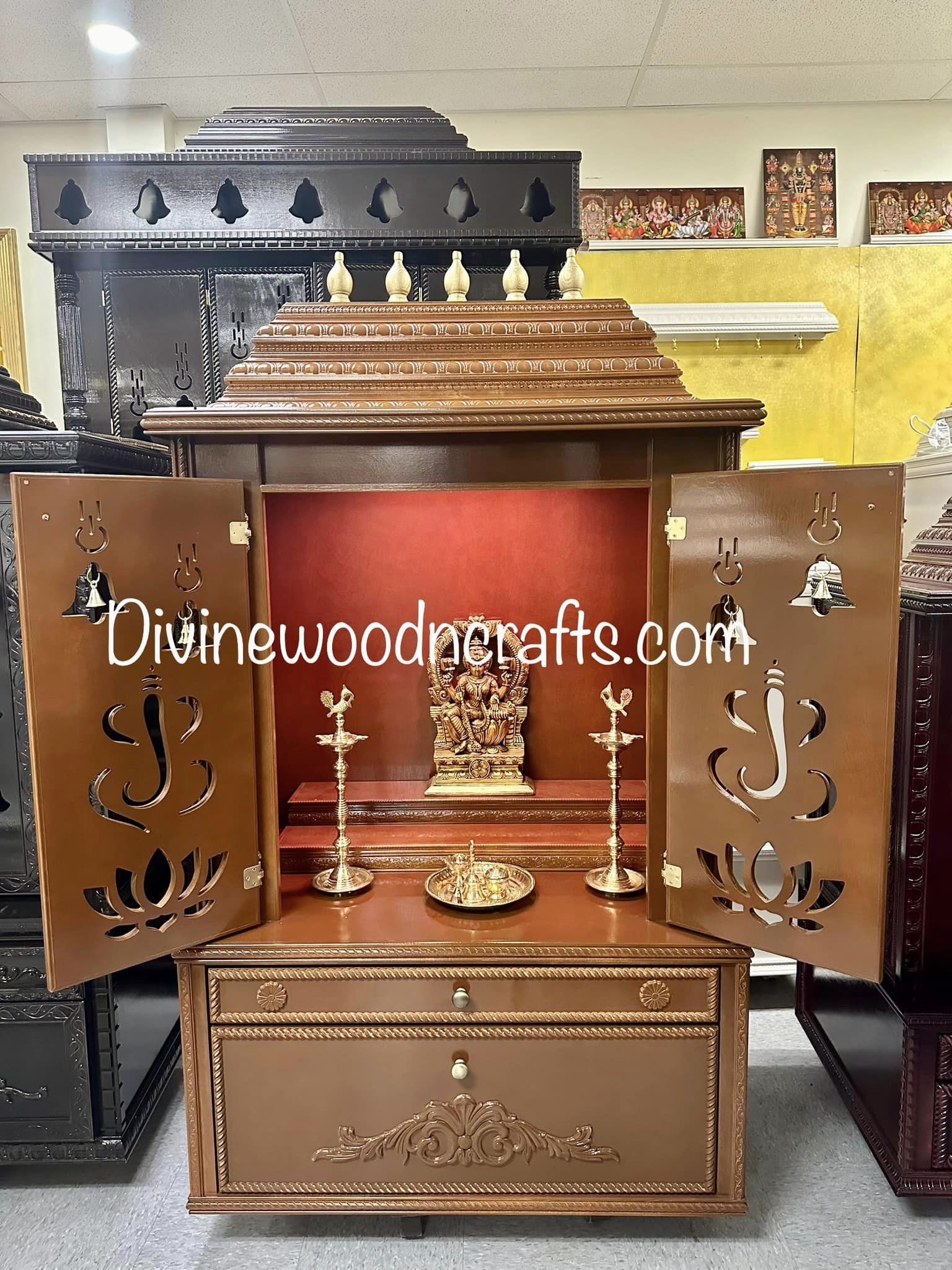 Divine Wood and Crafts manufactures high-end Custom Pooja Mandirs & Divine furniture for both private residences and commercial spaces.