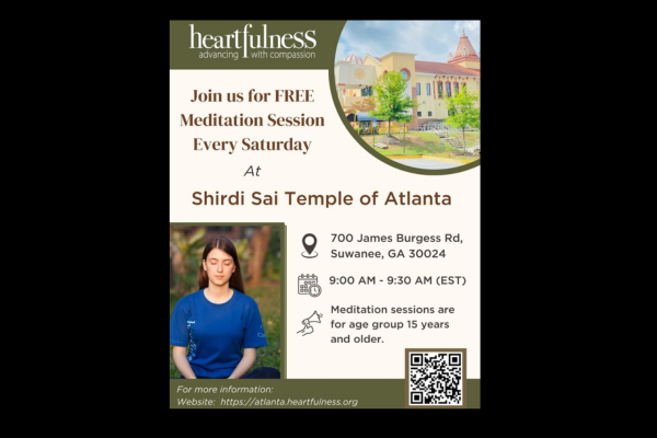 The Shirdi Sai Temple of Atlanta is hosting free weekly meditation sessions every Saturday from 9:00 AM to 9:30 AM (EST). Organized in collaboration with Heartfulness, these sessions are open to individuals aged 15 and above and aim to promote mindfulness, inner peace, and compassion. Participants can enjoy a serene environment at the temple while learning simple yet profound meditation techniques.