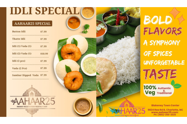Our restaurant has been delighting the community with our authentic and flavorful Indian vegetarian cuisine. Our deep-rooted passion for cooking and commitment to using only the finest ingredients have cultivated a loyal following of customers who return time and again for our mouth-watering dosas, aromatic Paneer based dishes, hearty curries, and other traditional specialties.