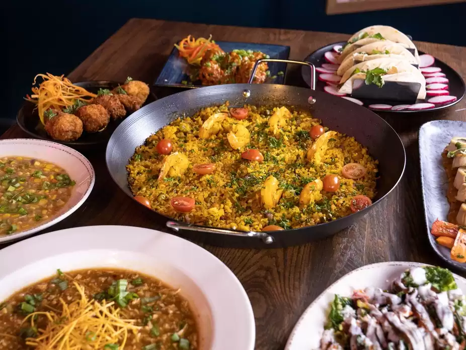 AllGoRhythms Dulles Bar & Restaurant is a vibrant spot blending Indian, Mexican, & American cuisines with a lively vibe. Enjoy diverse menus for breakfast, lunch, happy hour, & dinner, plus craft cocktails, beers, & wines. Live music & dance events create an electric atmosphere. Open until late night, it’s perfect for dining, drinks, or dancing with friends. All Go Rhythms