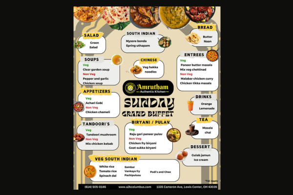 Indulge in a sumptuous Sunday buffet at Amrutham Restaurant!