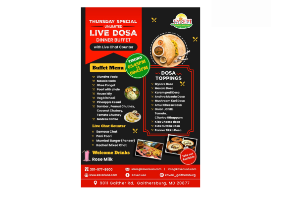 KAVERI is an authentic South Indian restaurant located in Gaithersburg, Maryland, bringing the true taste of the South to your plate. We specialize in traditional South Indian village recipes, offering a flavorful menu of dosas, idlis, vadas, sambars, and more—prepared with love and authentic spices that reflect the richness of regional cuisine. Whether you're craving a hearty meal or nostalgic home-style cooking, KAVERI delivers a truly satisfying South Indian dining experience.