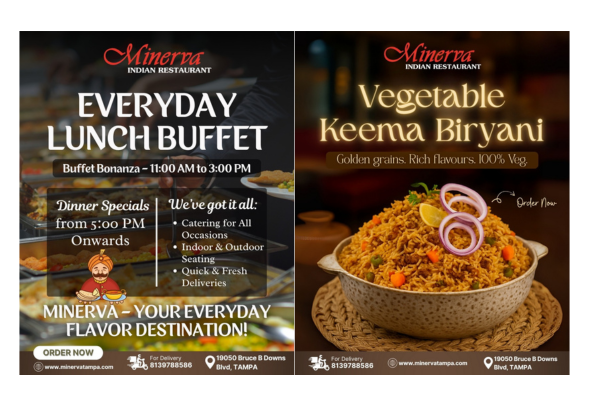 At Minerva, our kitchen is where history and tradition come to life. Indian food is more than just ingredients—it's about the stories passed down through generations. Our biryani, tandoori, and South Indian dishes honor the old while embracing the new. Whether savoring our famous biryani or a tandoori entrée fresh from the oven, you’ll experience the rich history woven into every recipe, making each bite a connection to the past and a taste of something exciting and fresh.