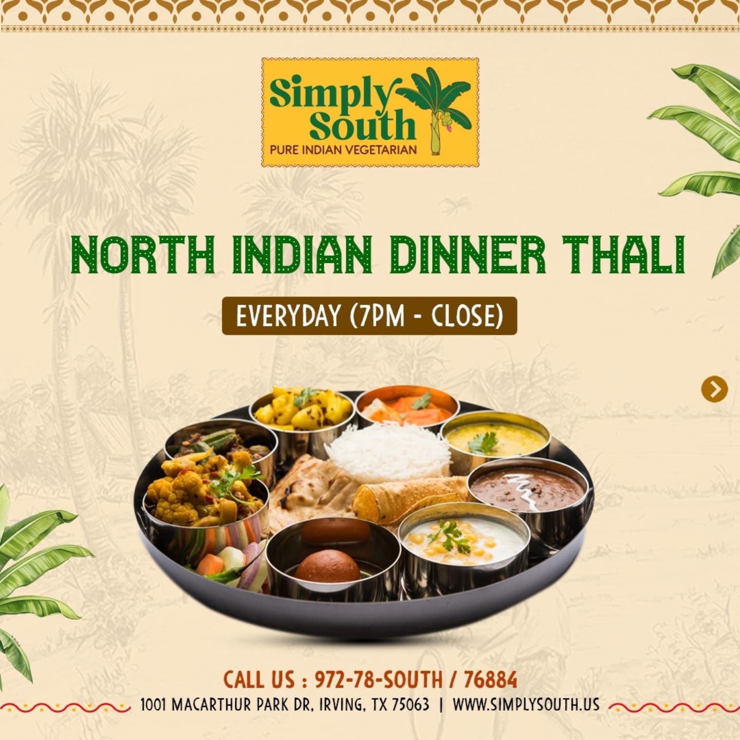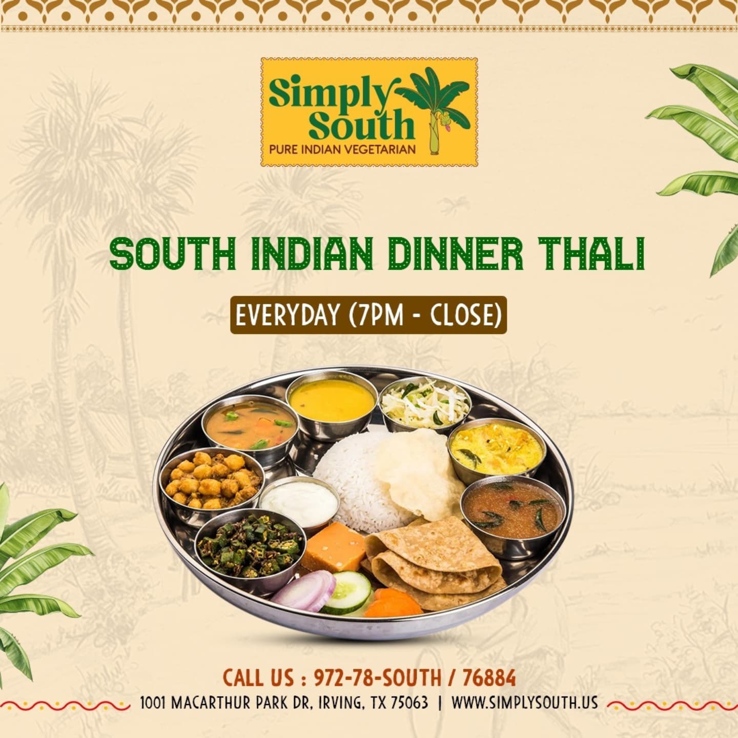 What sets us apart is our commitment to showcasing all the flavorful dishes of India, without the use of meat. At Simply South, we use only the freshest of ingredients and top notch spices to create dishes that will explode in your mouth with their diverse flavors. Our chefs are masters in not only making the food delectable, but also nutritious.