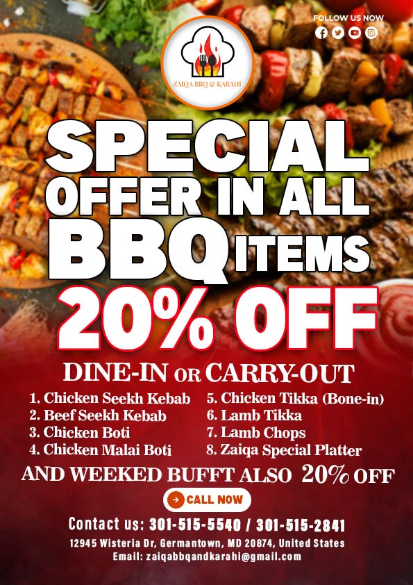 Savor the Flavor, Taste the Difference! Elevate Your Dining Experience with Us. This offer valid till February ZAIQA BBQ & Karahi @followers