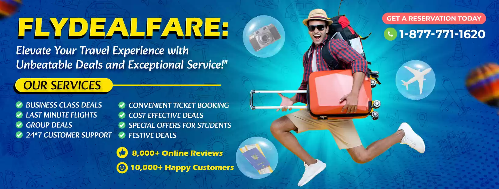Fly Deal Fare deals in Flights to India, Hotel Booking and other travel services. Our main agenda is to serve our clients with the finest hospitality and to make the booking of tickets easy for them. You can connect us through our 24/7 toll-free number, with the medium of chat or by E-mail.