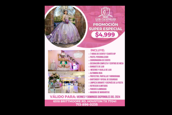 Specialists in the complete organization of events and banquets. Everything for your parties such as Weddings, Sweet 15s, Baptisms, Presentations, First Communions, Corporate Events, Advertising Agencies, Inaugurations, Graduations and any type of event.