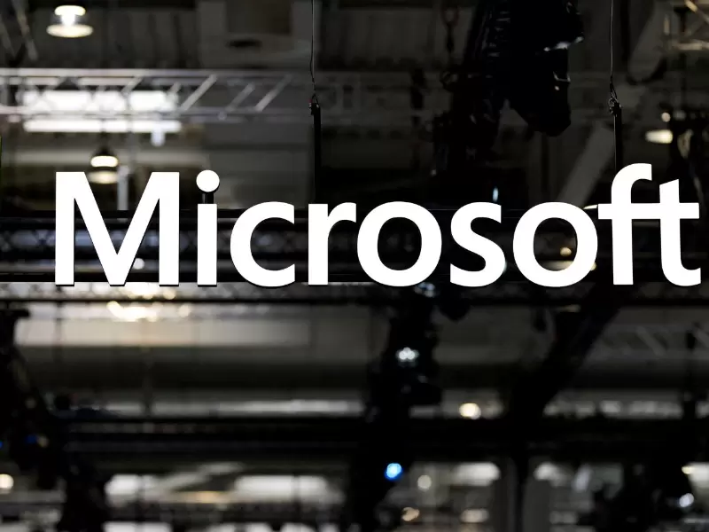 A view shows the Microsoft logo on the day of the Hannover Messe, one of the world's largest industrial trade fairs with this year's partner country being Canada, as both Canada and the European Union face new U.S. tariffs, in Hanover, Germany, March 31, 2025. / REUTERS/Fabian Bimmer/File Photo