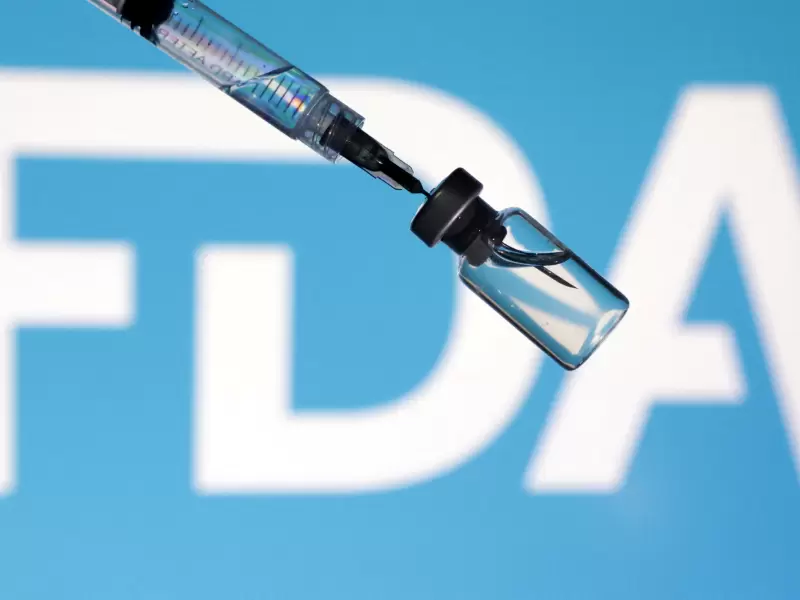 A U.S. Food and Drug Administration (FDA) logo, a syringe and a vial are seen in this illustration taken May 13, 2025. / REUTERS/Dado Ruvic/Illustration
