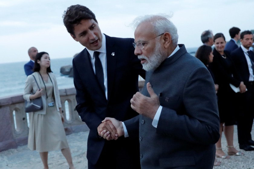 Canada's Prime Minister Justin Trudeau shake hands with Indian Prime Minister Narendra Modi after the family photo with invited guests at the G7 summit in Biarritz, France, August 25, 2019. REUTERS/Carlos Barria/File Photo / Reuters