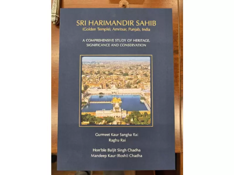 Front of the book, Sri Harmandir Sahib: A Comprehensive Study of Heritage, Significance and Conservation. / Baljit Singh ChadhaTheir efforts bore fruit as they traveled all the way from Montreal to New Delhi this week to present a first set of their books to Union Minister of Petroleum and Natural Gas, Hardeep Singh Puri.