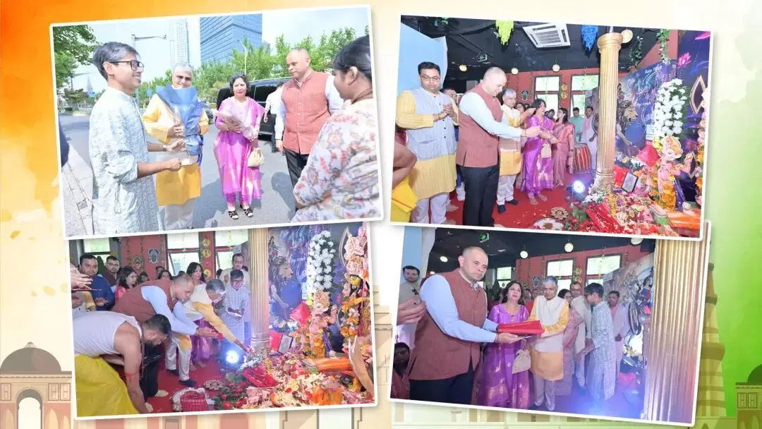 Earlier Amb. Rawat and his wife Shruti Rawat attended the vibrant morning Durga Puja  celebrations at Shanghai Adda.
