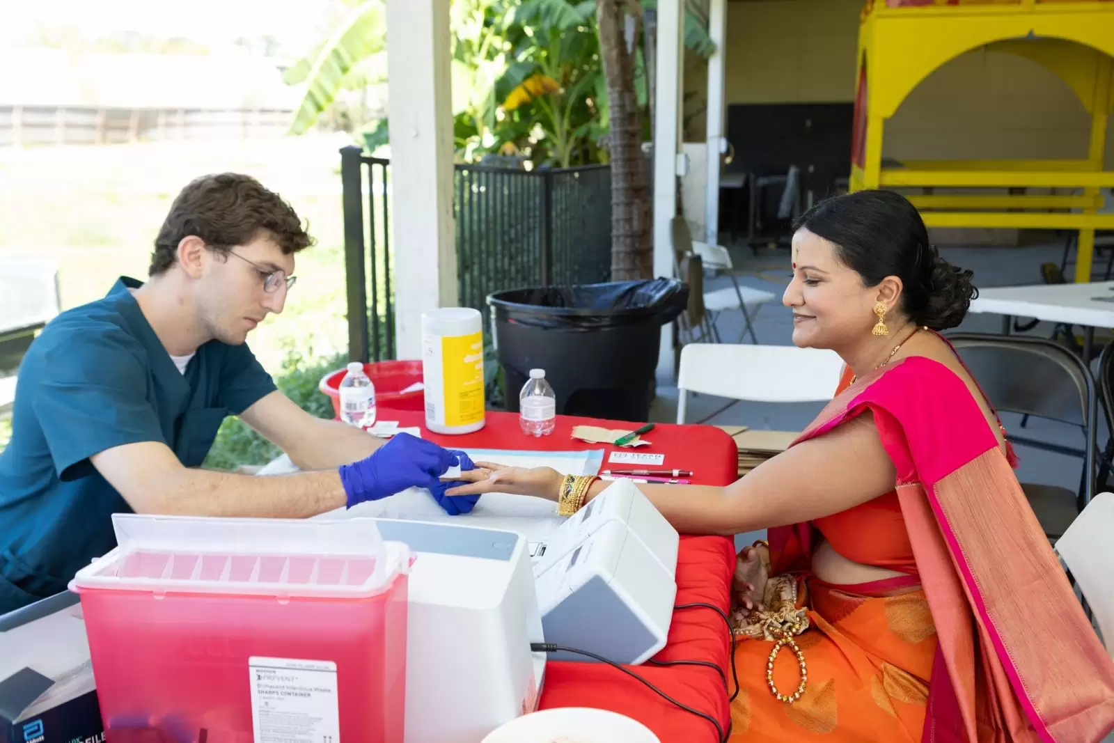 What set this year’s celebration apart was the addition of a free medical camp. The camp offered basic health checkups—including dental screenings, blood pressure and lung capacity checks, blood tests, B12 injections, and other consultations. It was designed to serve uninsured or underserved community members, as well as visiting parents from India who may hesitate to seek medical care but feel at ease at cultural gatherings. Many were gently encouraged to stop by the camp for a quick five-minute checkup before returning to the familiar buzz of the festivities.