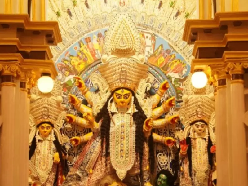 इसके केंद्र में हजारों सामुदायिक क्लबों द्वारा निर्मित जटिल रूप से गढ़ी गई मूर्तियां और अस्थायी मंदिर या 'पंडाल' हैं। कई पंडाल राजनीति से लेकर पॉप संस्कृति तक, समकालीन विषयों को दर्शाते हैं।