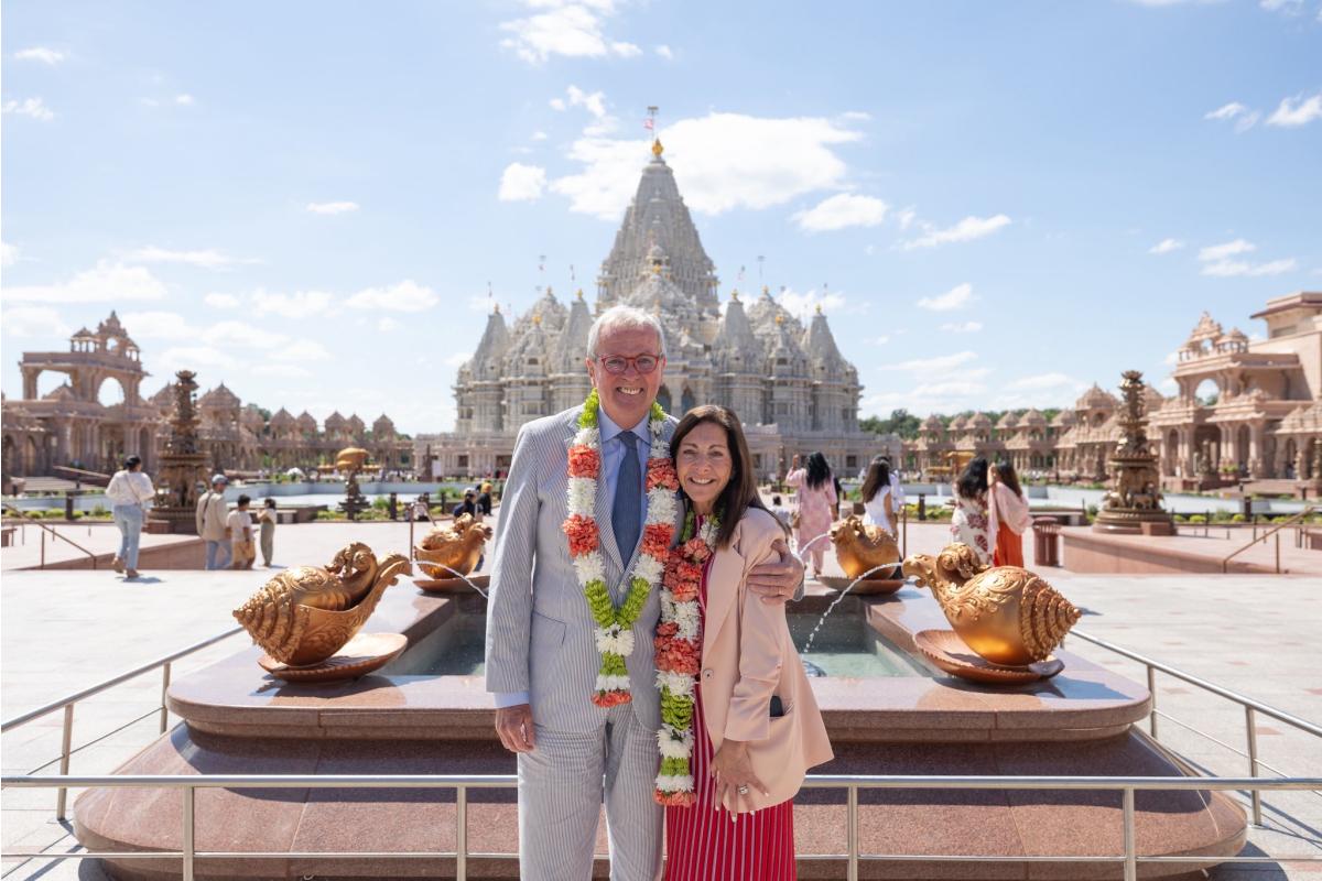 New Jersey Governor Phil Murphy and First Lady Tammy Murphy visited the BAPS Shri Swaminarayan Mandir in Robbinsville, New Jersey, the temple’s leadership announced this week. Phil Murphy is scheduled to travel to India next month, becoming the first sitting New Jersey governor to make such a visit.