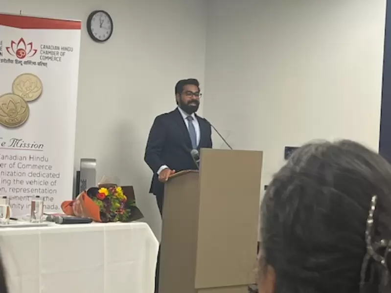 Kapidhwaja Pratap Singh, acting Consul-General of India in Toronto, addressing the Chandian Hindu Chamber of Commerce / Prabhjot Paul Singh