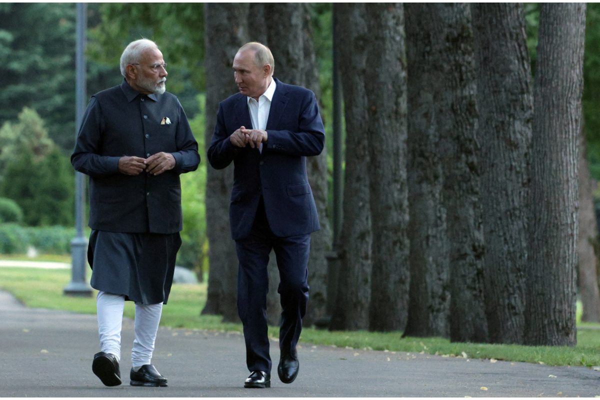 Russia's President Vladimir Putin and India's Prime Minister Narendra Modi walk during their meeting at the Novo-Ogaryovo state residence near Moscow, Russia July.8, 2024. / Reuters/Sputnik/Gavriil Grigorov/Pool
