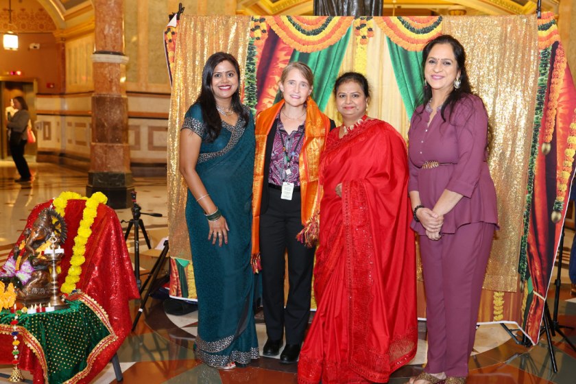 Rep Micheele Mussman was felicitated the team / Prachi JaitlyThe event featured the celebration of Diwali by offering prayers by the priests, and the announcement of the proclamation at the beginning of the session by the priest, declaring October as the Hindu Heritage Month in the State of Illinois signed by Governor J.B Pritzker. As part of the festivities, the proclamation message formally recognized the contributions of Hindu Americans by declaring October as Hindu Heritage Month in the state. This declaration highlights Illinois’ commitment to celebrating diversity and fostering an inclusive environment.