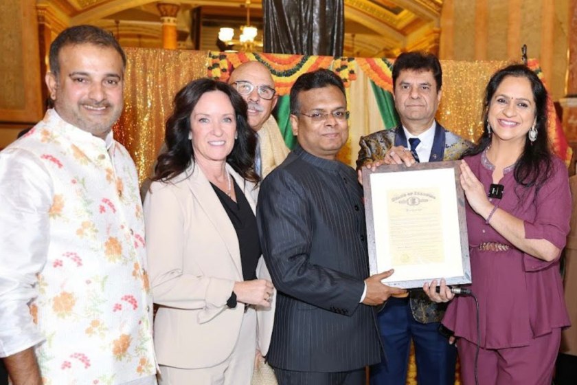 Cosul Genral Somnath Ghosh and proclamation ceremony declaring October as Hindu Heritage Month in Illinois, signed by Governor J.B. Pritzker / Prachi Jaitly