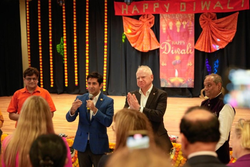 Governor Tim Walz celebrates Diwali at Bharatiya Temple in Pennsylvania with the community / Andrew Peng
