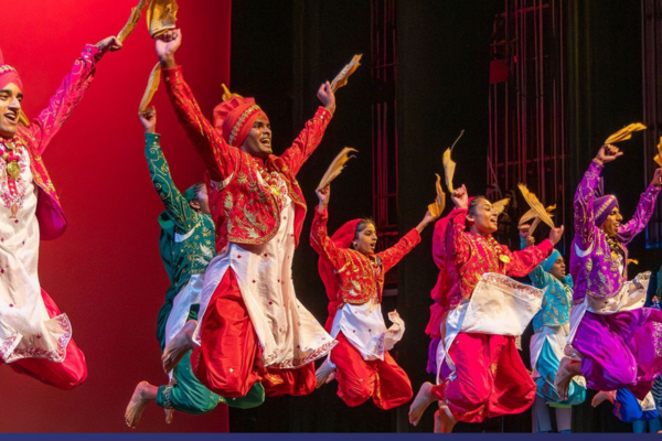 Duke Dhamaka, one of the student groups to perform in Awaaz, presents a high energy, traditional bhangra routine during the show. / Image- Jared Lazarus, University Communications and Marketing.