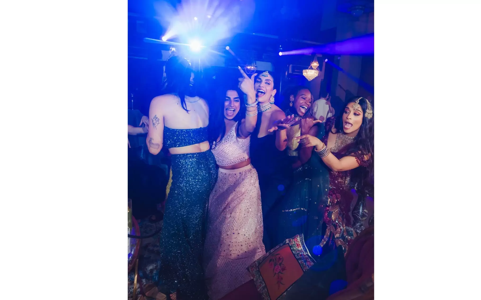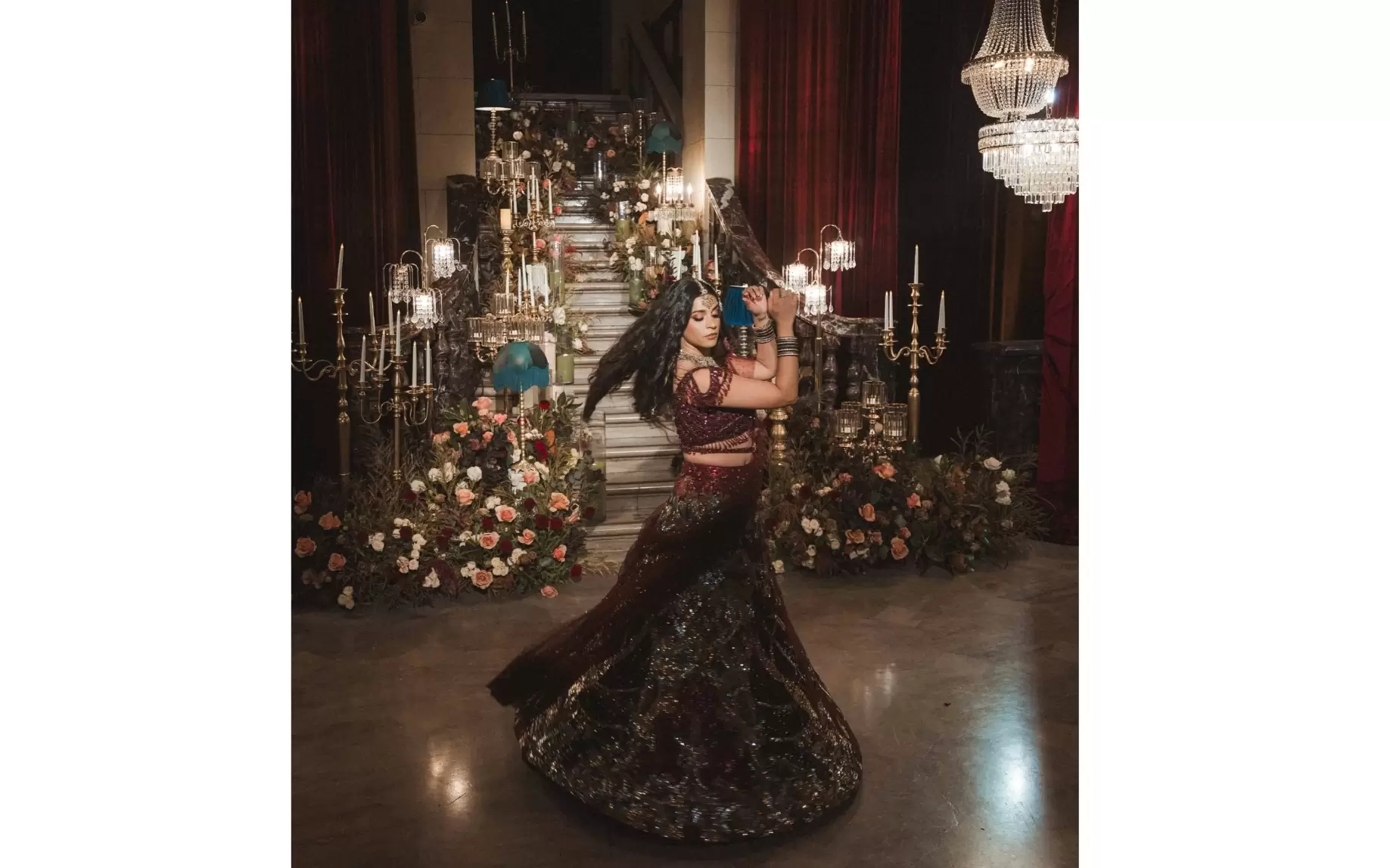 The event’s decor was designed by Saman and her team at 2CreateDesigns, transforming the venue into what Singh described as “another world,” complete with floral installations, vintage furniture, and a fountain encircled by Kathak dancers choreographed by ChasingLife. Music came from longtime collaborators 3D Sounds and DJ Nitro, with a guest set by M2Ray.