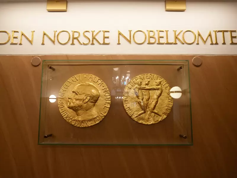FILE PHOTO: A sign for the Norwegian Nobel Institute is seen on a wall inside the institute's building in Oslo, Norway, September 9, 2025. / REUTERS/Tom Little/File Photo