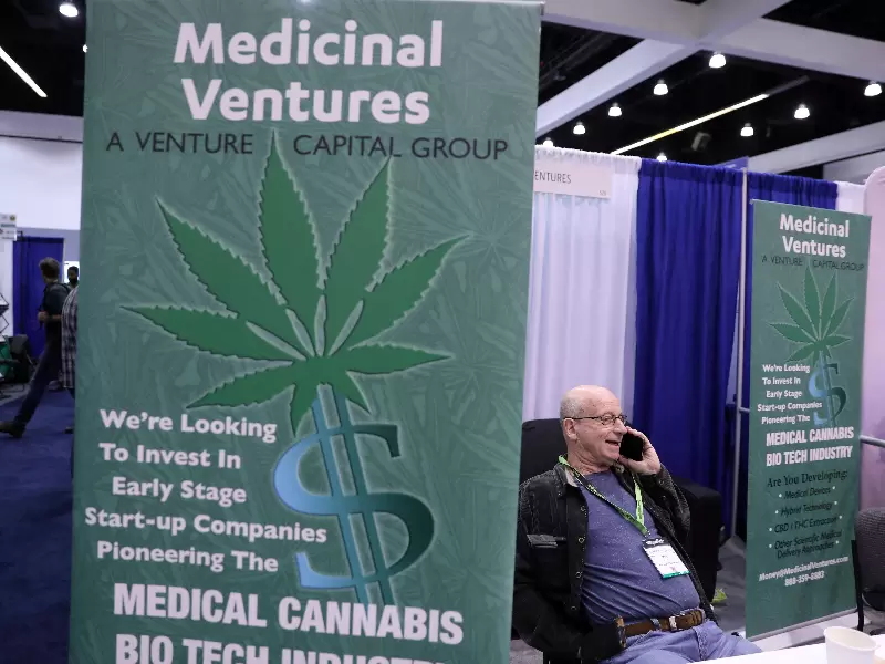 FILE PHOTO: A venture capital booth is seen at the Cannabis World Congress and Business Exposition, a trade show for the legalized adult use, medical marijuana and industrial hemp industries, in Los Angeles, California, U.S., September 15, 2017. / REUTERS/Lucy Nicholson/File Photo