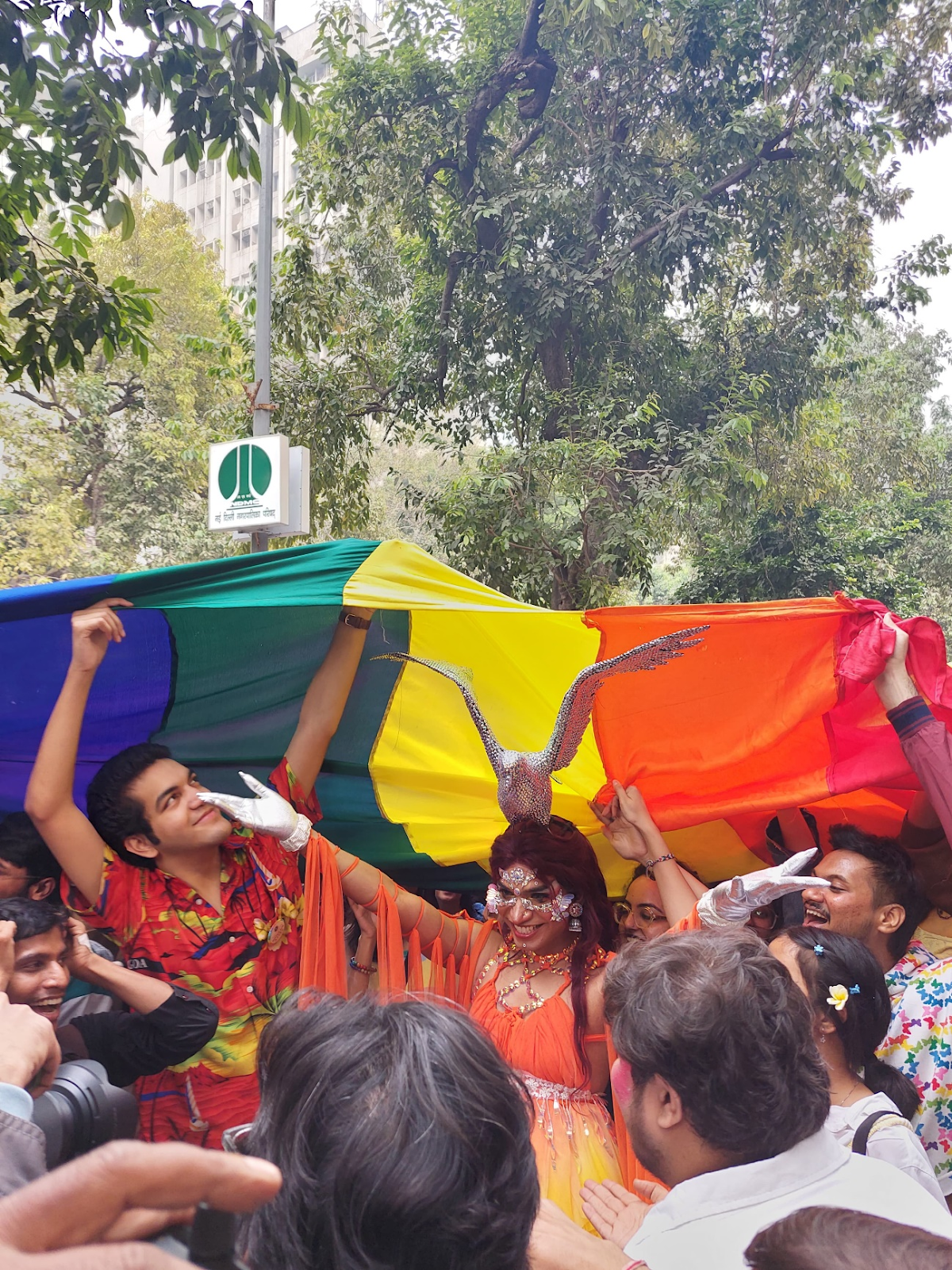 People marched in unison from Barakhamba road to Jantar Mantar, chanting for marriage equality and equal human rights. Children, the elderly, some street vendors, and even puppies were drawn to the rainbow sea.
