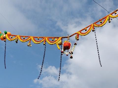 The infamous Dahi Handi festival, honors the same tradition. Devotees suspend a pot filled with milk, curd, butter, and various dairy products high above the ground, often on multiple floors and then form a human pyramid to reach and break the pot. The person on top of the human pyramid is referred to as Govinda (Krishna).