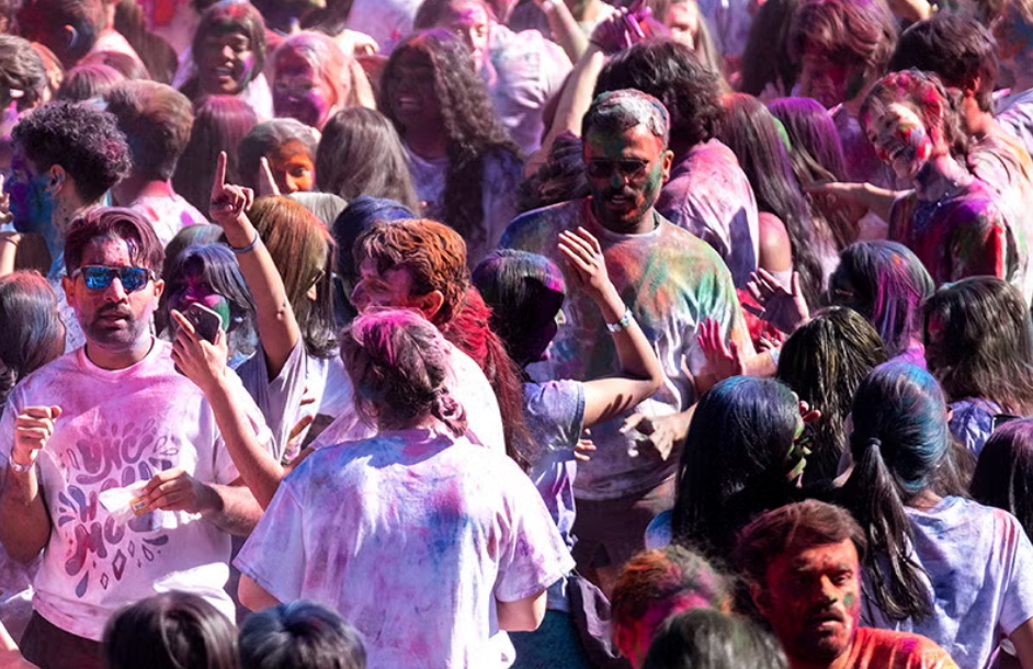 At Queensborough Community College (QCC) in New York, the Association of Indians in America hosted a Holi celebration, combining traditional cultural elements with a lively color-throwing event. Students and faculty engaged in dance, music, and camaraderie, embracing the spirit of the festival.