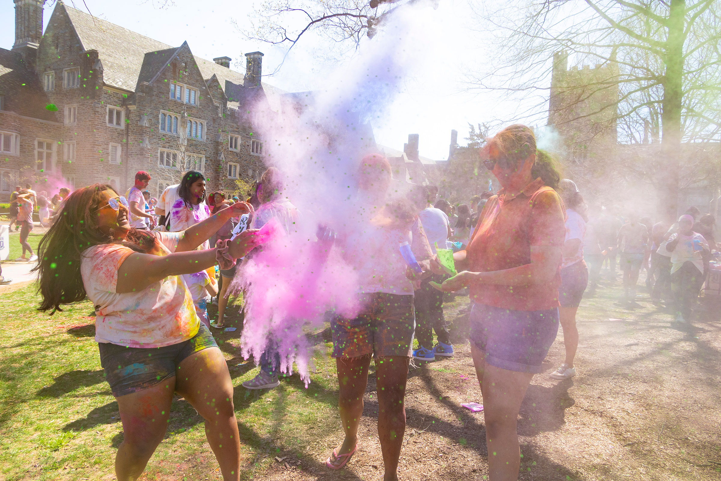 Duke University witnessed an explosion of colors as students gathered in an open space to celebrate Holi with traditional powder-throwing, dancing, and laughter. The event underscored the university's commitment to diversity and inclusivity.