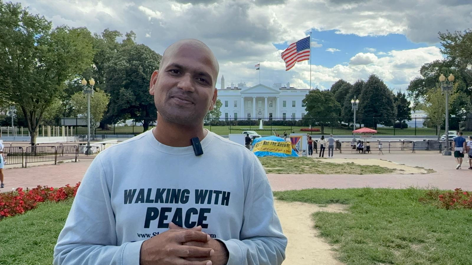 In a world filled with division and hate, he is covering close to 4,000 miles on foot and spreading the message of peace and inspiring a shift towards harmony and non-violence.