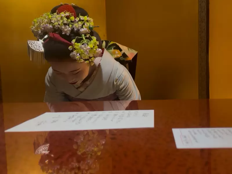 The multi-course lunch with her was organized by Minami, who runs the Maiko Ozashiki Experience in Kyoto by Utage Kaigai. The English interpreter, a 32-year-old Japanese mom, felt gauche and starstruck in front of the idolized geisha-in-the-making.