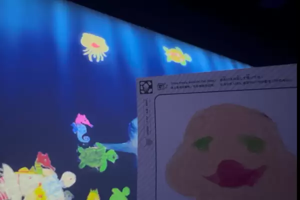 Tea where flowers blossom at teamLab Borderless / Ritu MarwahOne of the attractions is the Sketch Aquarium, a digital aquarium where drawings come alive. Visitors color a fish, an octopus, or any sea creature on a paper, then scan it. Their sea creature floats off their paper into the aquarium and swims around them. It is magical to birth a member of the Sketch Aquarium.
