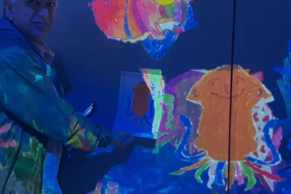 Their sea creature floats off their paper into the aquarium and swims around them. It is magical to birth a member of the Sketch Aquarium.