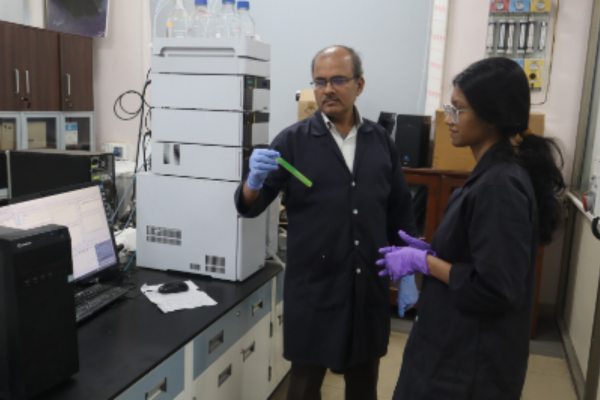 PhD student TV Keerthana (right) with research supervisor N Jayaraman (left). / Image -NJ Group/IISc