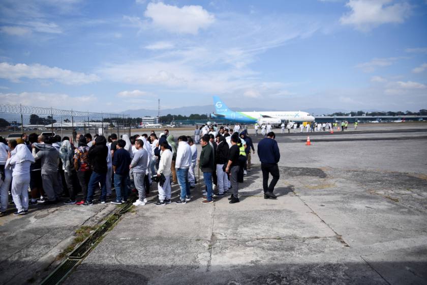 US military aircraft with deported migrants lands in...