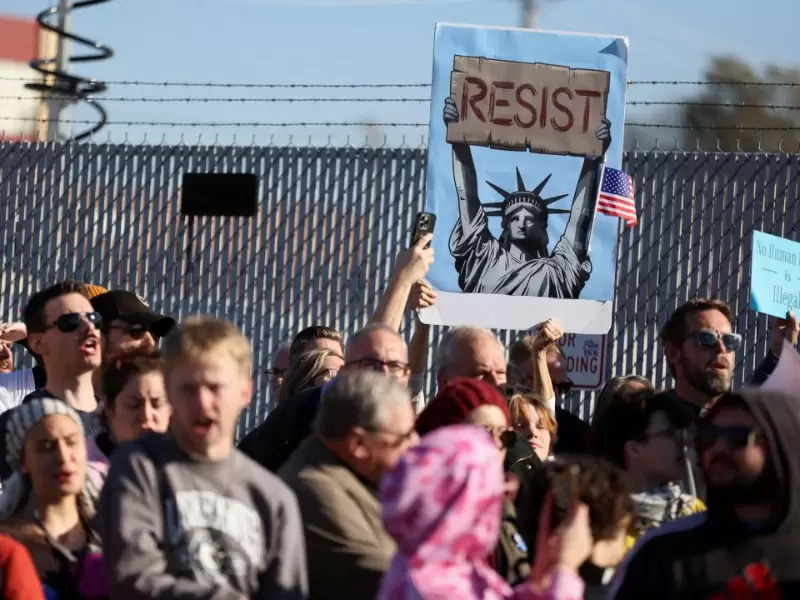 People attend a protest against immigration actions, outside the Broadview ICE facility in Chicago, Illinois, U.S., November 14, 2025. / REUTERS/Jim Vondruska