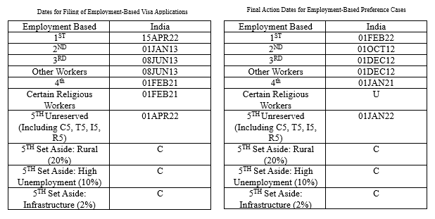 Employment-based First (Priority Workers): India’s visa cut-off is on April 15, 2022.
