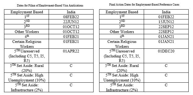 Employment-based First (Priority Workers): India’s visa cut-off moves up significantly to February 1, 2022.