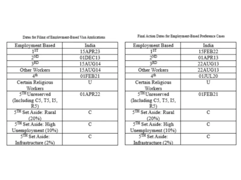 The Final Action Dates chart illustrates the dates when visas may finally be issued, and the Dates for Filing Applications demonstrate the earliest dates when applicants may be able to apply.