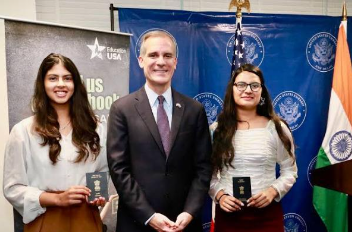Indian ambassador to India Eric Garcetti with Indian students / representative image: US Embassy