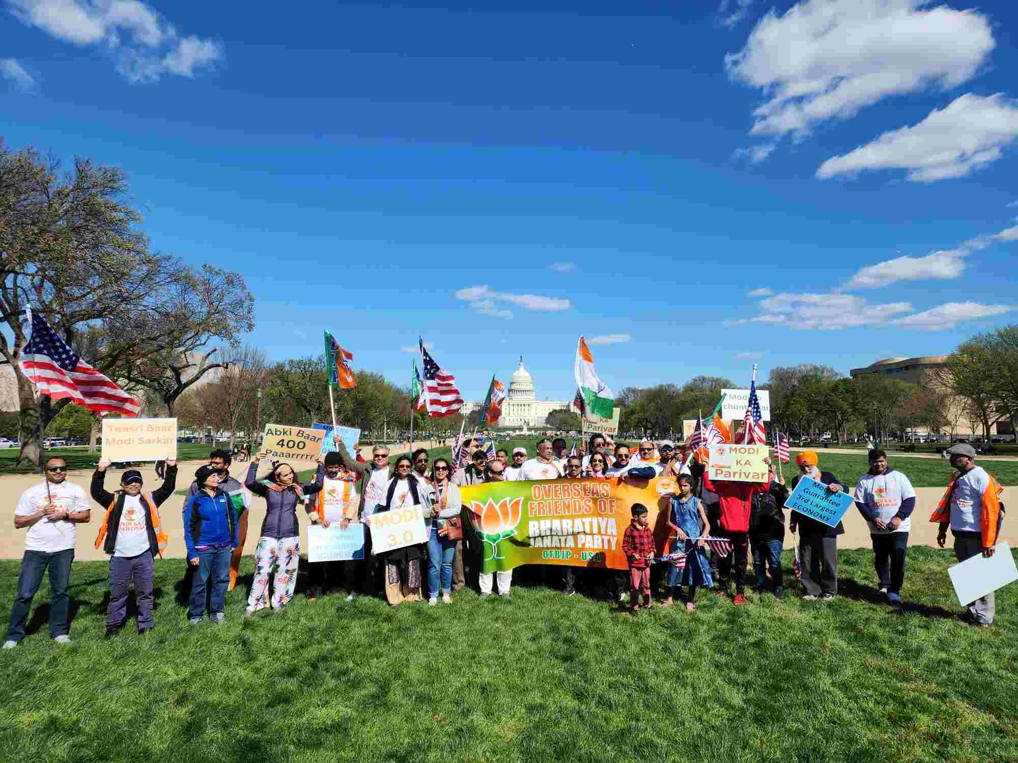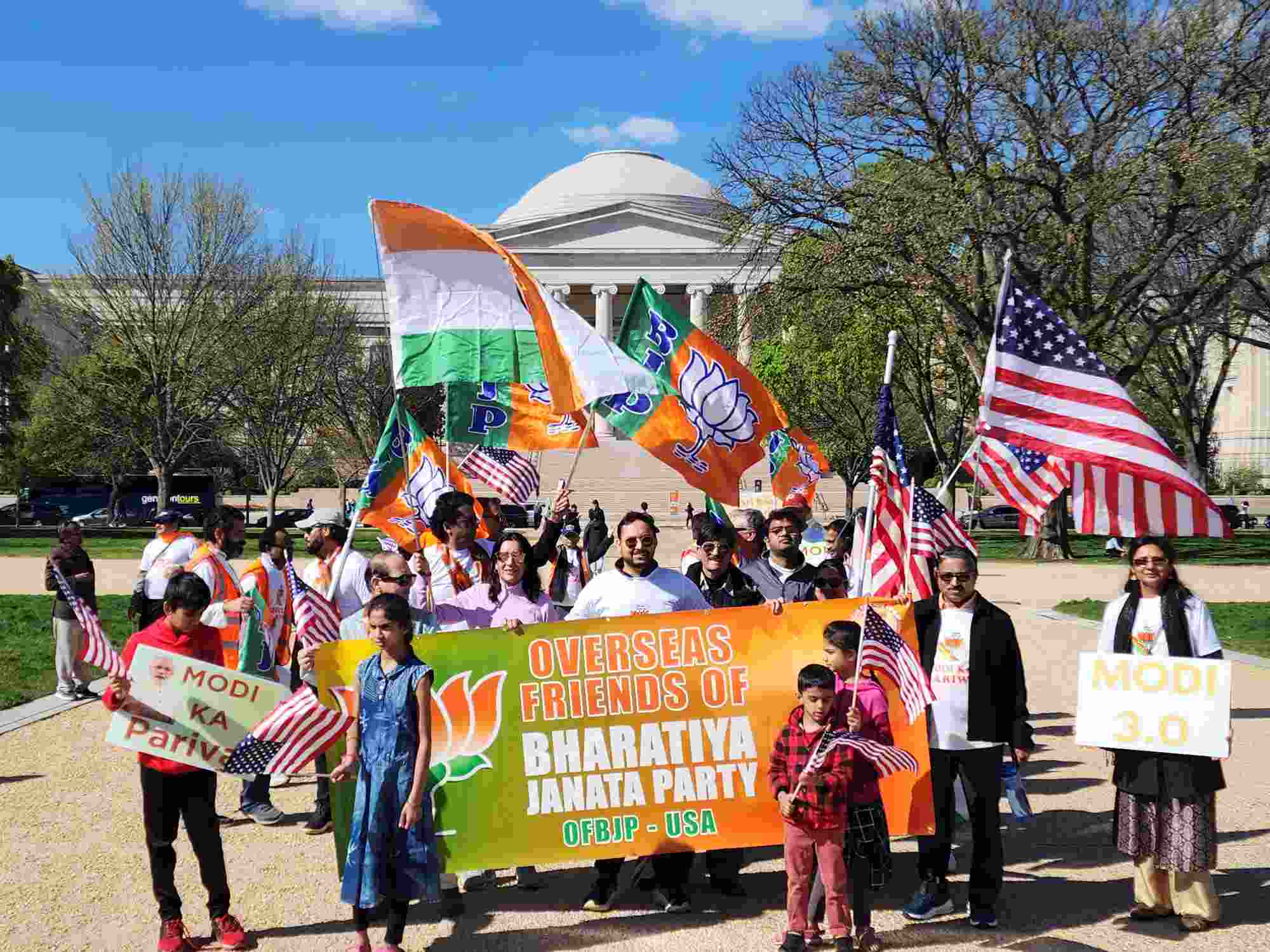 Dr. Adapa Prasad, president, OFBJP-USA said, "members of the Indian American community representing various states of India, Kashmir to Kerala and Maharashtra to east came out in all colors to march as 'Modi ka Parivar' (Modi's family) at iconic places in over 16 cities in America."