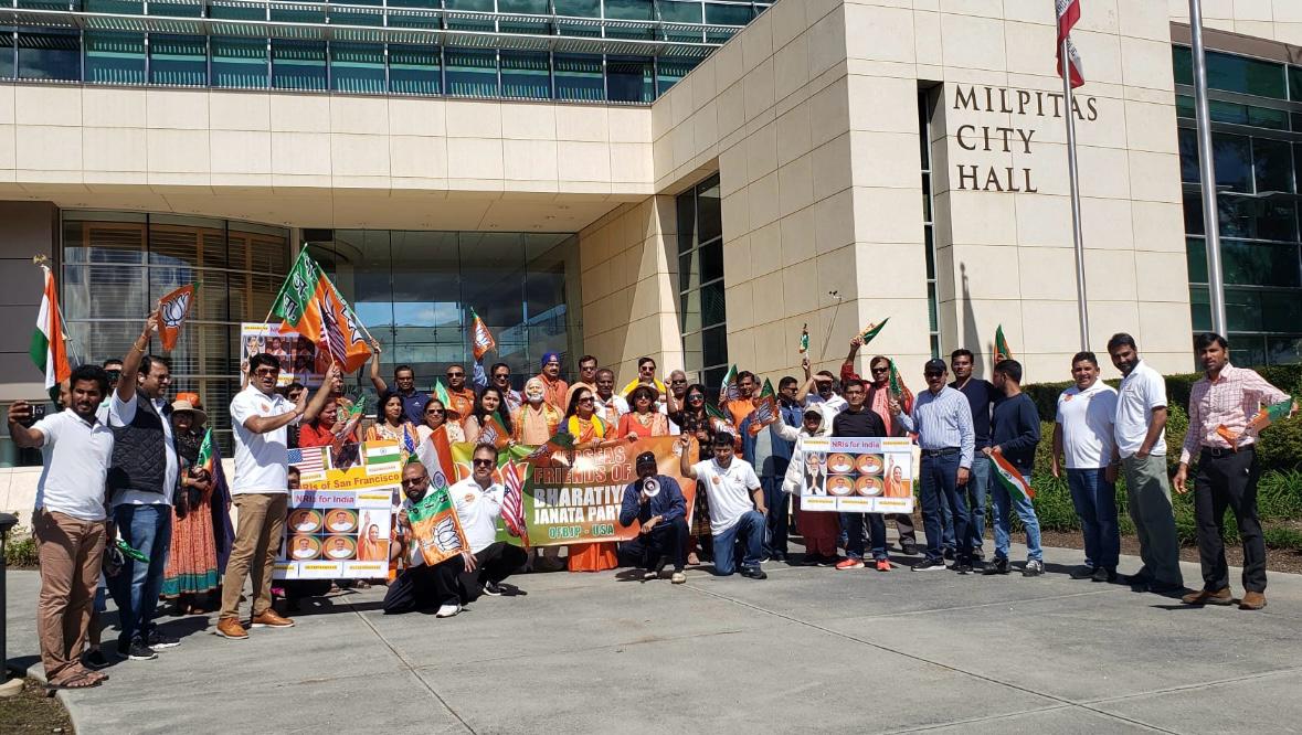 The rally drew a substantial crowd, with around a hundred cars and hundreds of participants from various parts of the Bay Area showing their support for the Modi government's re-election bid. Participants displayed banners, flags, and slogans, reflecting their enthusiasm for India's progress under Modi's leadership.