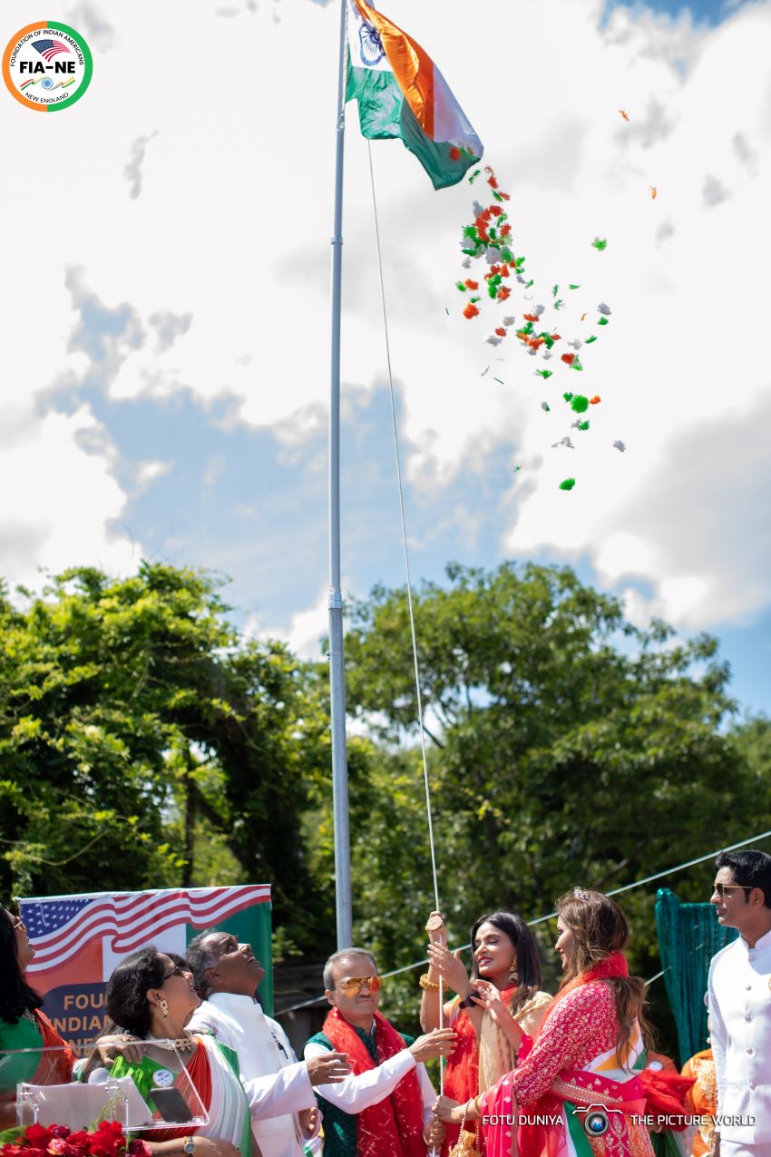 Flag Hoisting ceremony. / FIA NEFIA-New England’s board of directors and executives, including Jyoti Singh, Deepak Rathore, Amol Penshanwar, Anupama Debroy, Manisha Kumar, and Priyanka Wadhwa organized the programme .