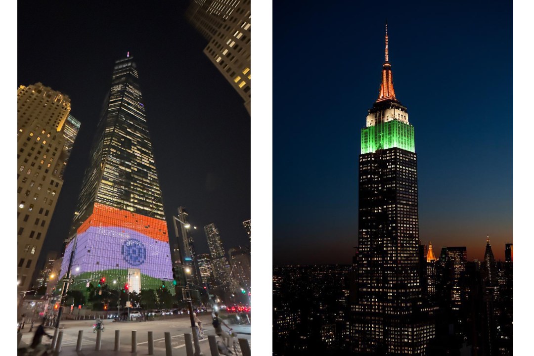 As part of the India Independence Day celebrations, the Federation of Indian Associations (FIA) illuminated the Empire State Building in the vibrant colors of the Indian tricolor. Additionally, the World Trade Center, the tallest building in the United States, was adorned with the Indian flag, showcasing the deep connections between India and the U.S. and marking the occasion with iconic tributes.