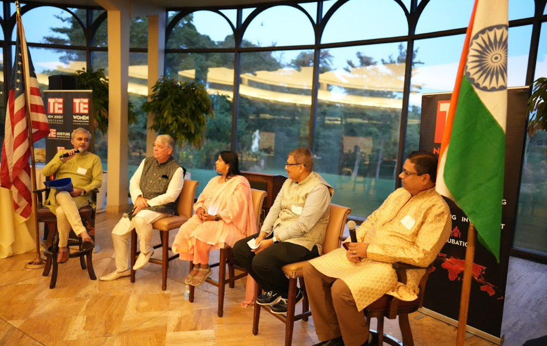 A panel discussion followed, featuring Bill Noonan (Choose New Jersey), Navin Pathak (Entry India | Entry USA), Lata Setty (How Women Invest), Raghu Rao (Sonnet BioTherapeutics), and Partha DeSarkar (Hinduja Global Solutions). Panelists provided insights into cross-border trade, investment opportunities, and workforce mobility.